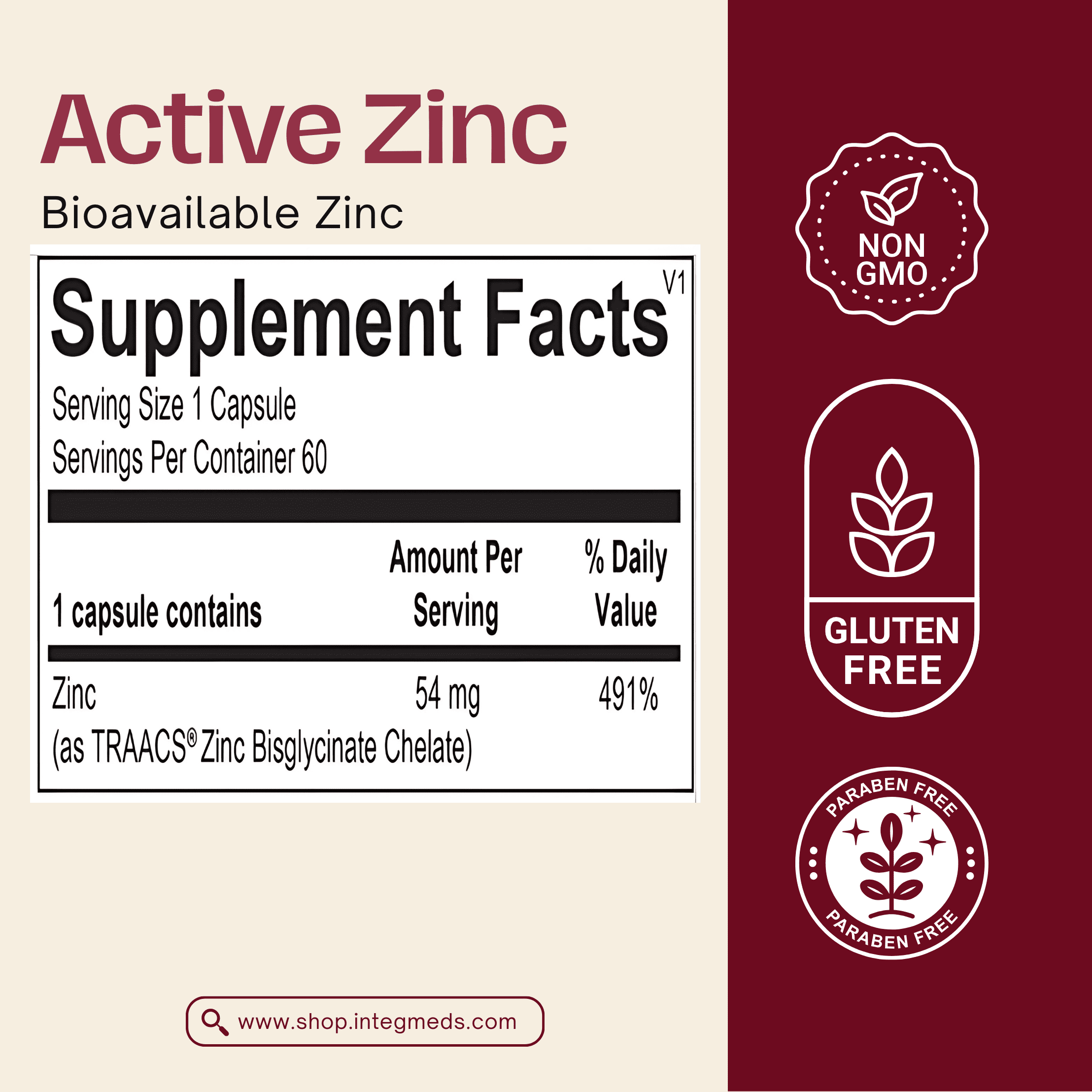 অ্যাক্টিভ জিঙ্ক 54 মিলিগ্রাম উচ্চ-শোষিত দস্তা সরবরাহ করে, আদর্শভাবে উন্নত শোষণ, সর্বোত্তম ব্যবহার এবং গ্যাস্ট্রোইনটেস্টাইনাল আরামের জন্য জিঙ্কের অ্যামিনো অ্যাসিড চেলেট ফর্ম (জিঙ্ক গ্লাইসিনেট) ব্যবহার করে তৈরি করা হয়। দস্তার সঠিক ফর্মের পরিপূরক শরীরের মধ্যে স্বাস্থ্যকর মাত্রা বজায় রাখার এবং একটি সম্পূরক নিয়ম মেনে চলার চাবিকাঠি। দস্তা রোগ প্রতিরোধ ক্ষমতা বাড়াতে, সুস্থ টিস্যু বৃদ্ধি বজায় রাখতে এবং অ্যান্টিঅক্সিডেন্ট রিজার্ভ বাড়াতে গুরুত্বপূর্ণ ভূমিকা পালন করে যা শরীরকে মুক্ত র্যাডিক্যাল ক্ষতি থেকে রক্ষা করে।