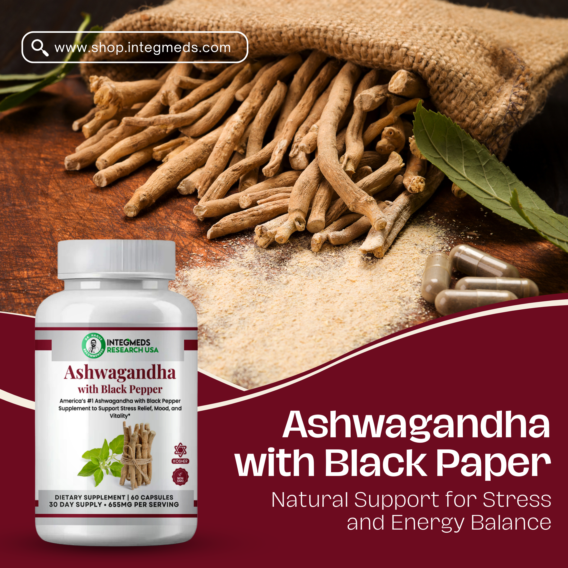 Experience the power of ancient herbal support with Haque Integmeds Ashwagandha with Black Pepper—a premium blend crafted to help your body adapt to stress, support emotional well-being, and promote physical vitality. Our high-potency formula combines organic Ashwagandha root extract with organic black pepper for enhanced absorption and faster results.