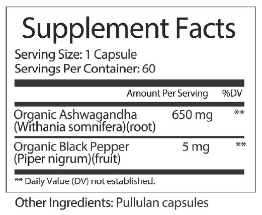 - 🌿 Organic Ashwagandha & Black Pepper Extract – 650mg total per serving