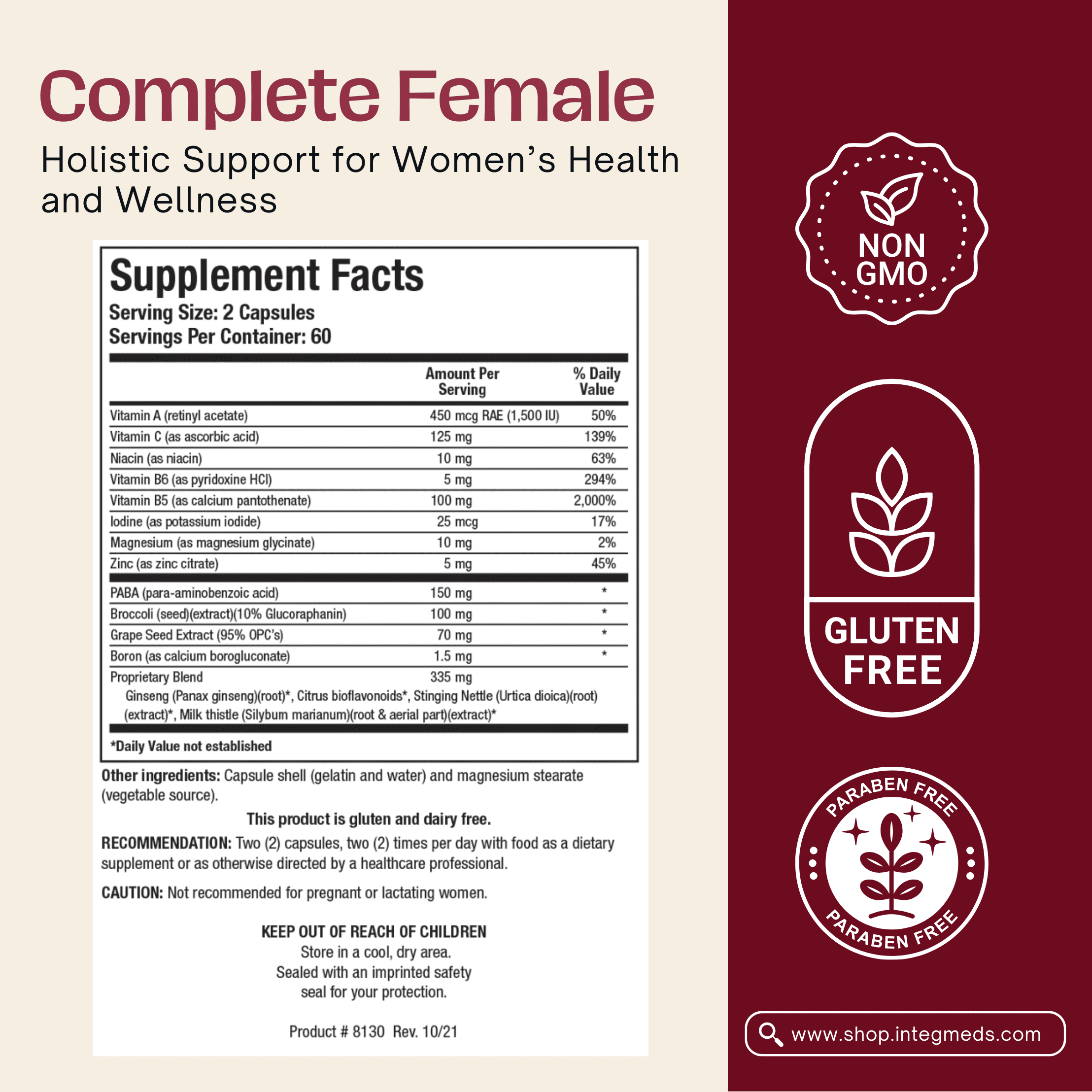 ইন্টিমেডস দ্বারা সম্পূর্ণ মহিলা হ'ল স্বাস্থ্যকর মহিলা অন্তঃস্রাব ফাংশনের জন্য প্রয়োজনীয় পুষ্টি সরবরাহ করার জন্য ডিজাইন করা একটি সাবধানে তৈরি পরিপূরক। ভিটামিন, খনিজ, বোটানিকাল এবং অঙ্গ / গ্রন্থি সহায়তার একটি অনন্য মিশ্রণ সহ, এই সূত্রটি সুষম হরমোনের মাত্রা এবং সামগ্রিক সুস্থতা সন্ধানকারী মহিলাদের জন্য আদর্শ।
