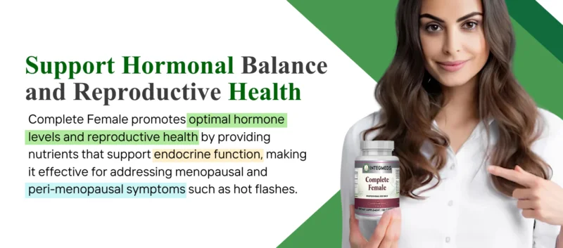 সম্পূর্ণ মহিলা এন্ডোক্রাইন ফাংশনকে সমর্থন করে এমন পুষ্টি সরবরাহ করে সর্বোত্তম হরমোন স্তর এবং প্রজনন স্বাস্থ্যের প্রচার করে, এটি মেনোপজাল এবং পেরি-মেনোপজাল লক্ষণগুলি যেমন গরম ঝলকানির জন্য কার্যকর করে তোলে। - হরমোন রিসেপ্টর স্বাস্থ্যকে অনুকূল করুন: