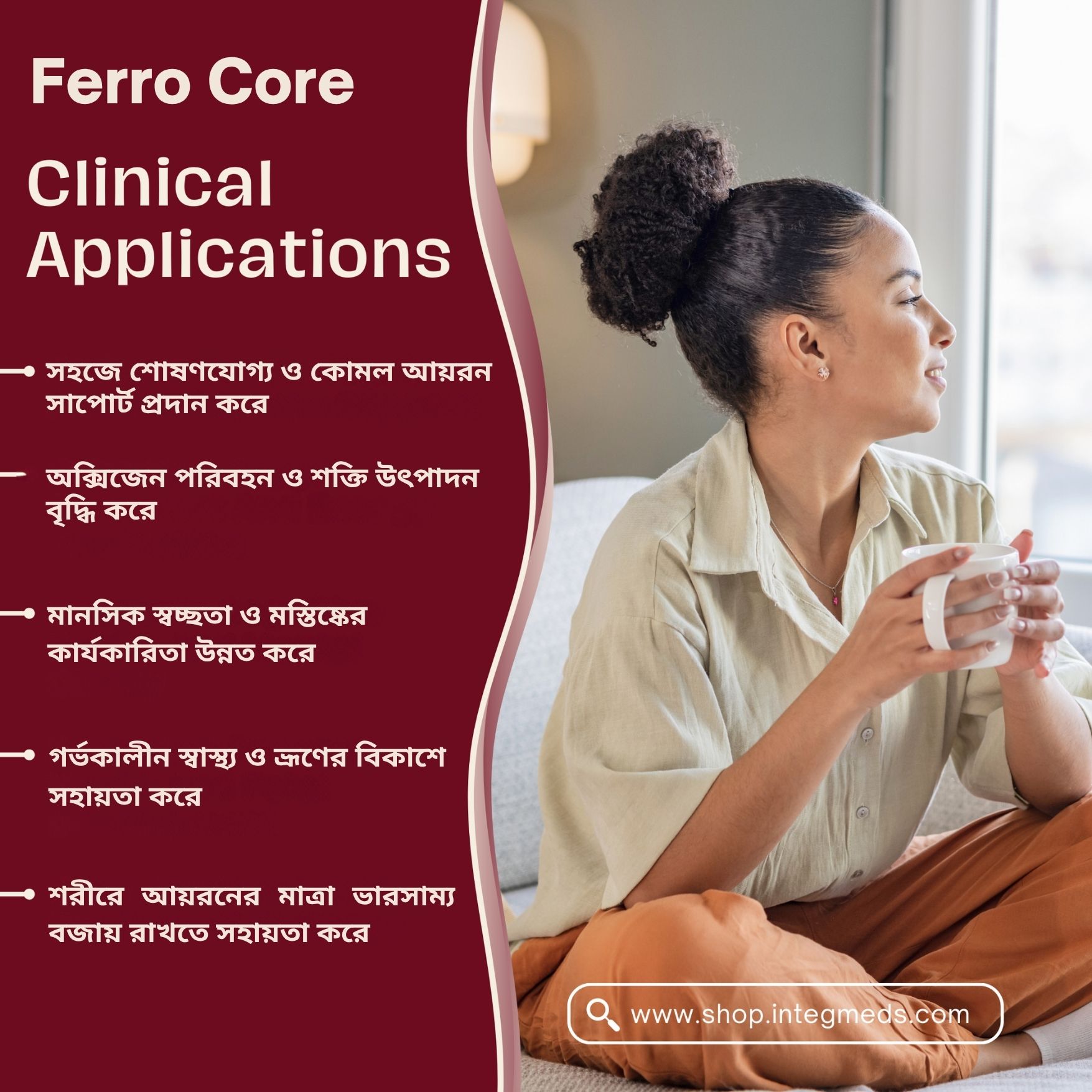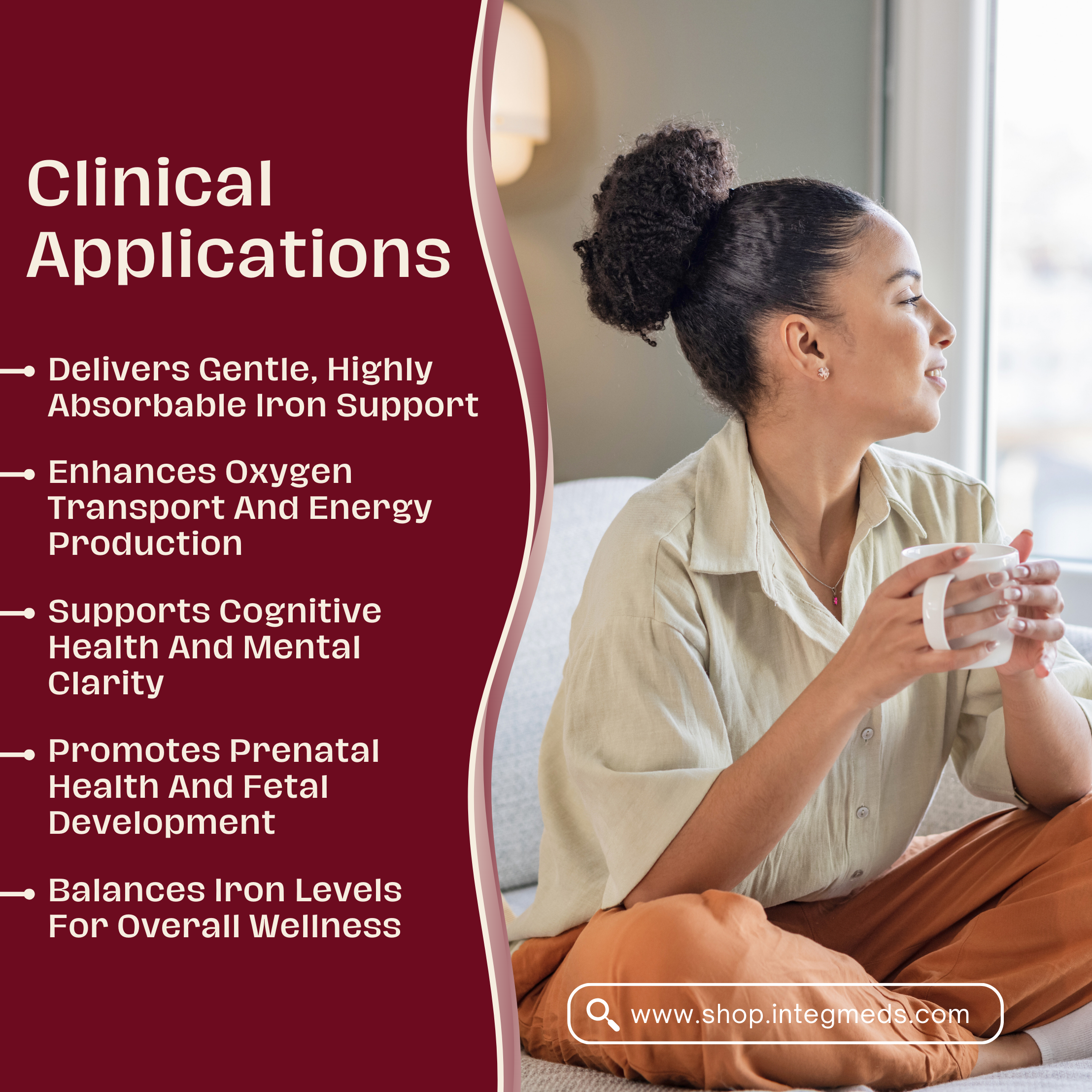 - বিভিন্ন প্রোটোকলের জন্য নিরাপদ, উচ্চ-শোষিত আয়রন সরবরাহ করে
