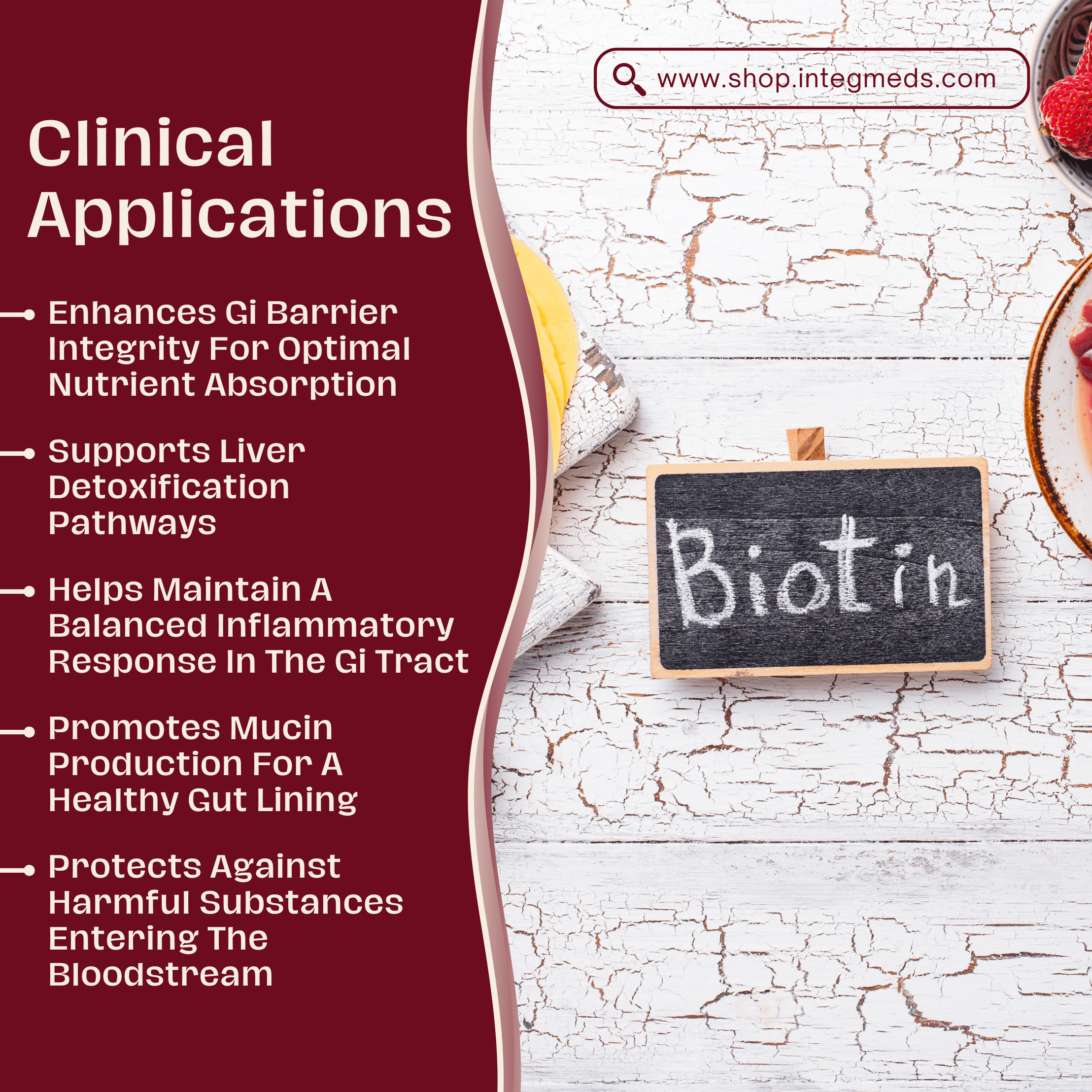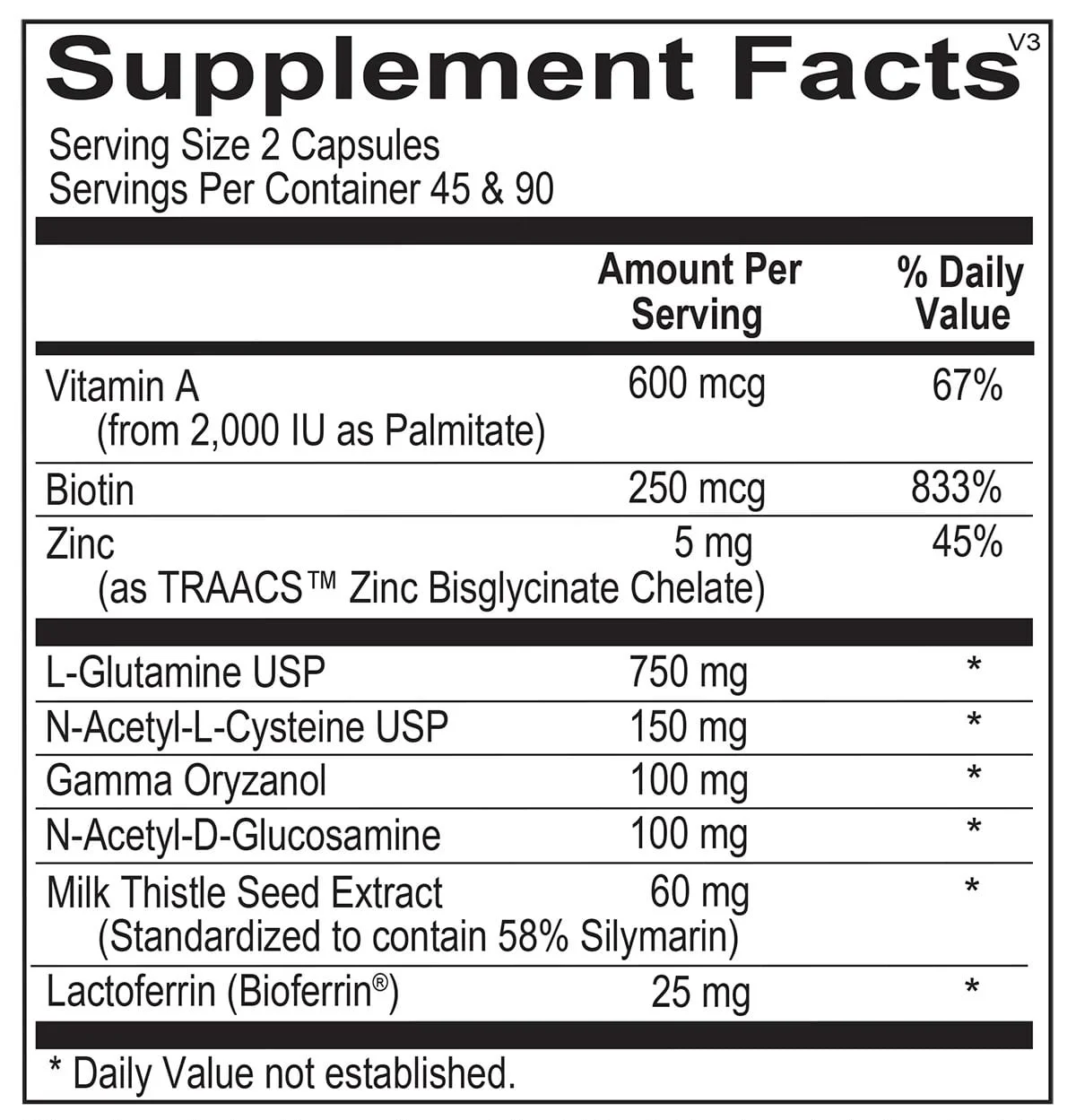 মিউকোসাল এপিথেলিয়াম একাধিক উদ্দেশ্যে কাজ করে যার মধ্যে রয়েছে ডায়েট থেকে পুষ্টিগুলি শোষণ এবং হজম করার অনুমতি দেওয়া এবং একই সাথে বাধা হিসাবে কাজ করে যা অযাচিত খাদ্য কণা, টক্সিন এবং অণুজীবকে সরাসরি শরীরে প্রবেশ থেকে রক্ষা করে। এল-গ্লুটামিন এবং বায়োটিন প্লাসে এমন উপাদানগুলির একটি সিনার্জিস্টিক মিশ্রণ রয়েছে যা সামগ্রিক স্বাস্থ্যকে সমর্থন করার জন্য সাধারণ প্রদাহজনক ভারসাম্য এবং লিভারের ডিটক্সিফিকেশন পথ বজায় রাখার সময় জিআই আস্তরণের স্বাস্থ্যকে সমর্থন করে।