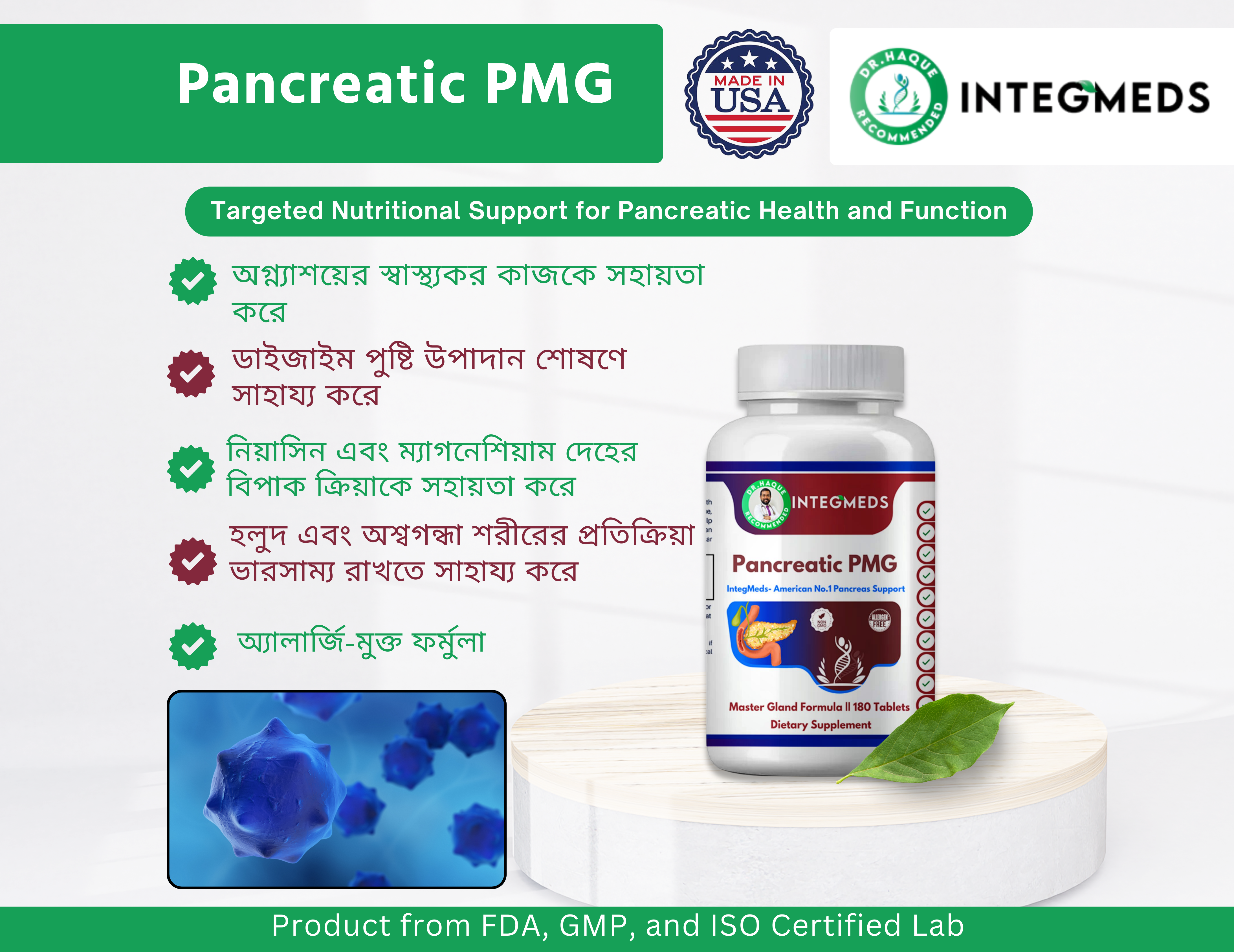 অগ্ন্যাশয় পিএমজি দিয়ে আপনার অগ্ন্যাশয় স্বাস্থ্য এবং পাচনতন্ত্রকে সমর্থন করুন - অনুকূল অগ্ন্যাশয় ফাংশন এবং সামগ্রিক সুস্থতা প্রচারের জন্য ডিজাইন করা একটি প্রাকৃতিক, লক্ষ্যযুক্ত সূত্র।