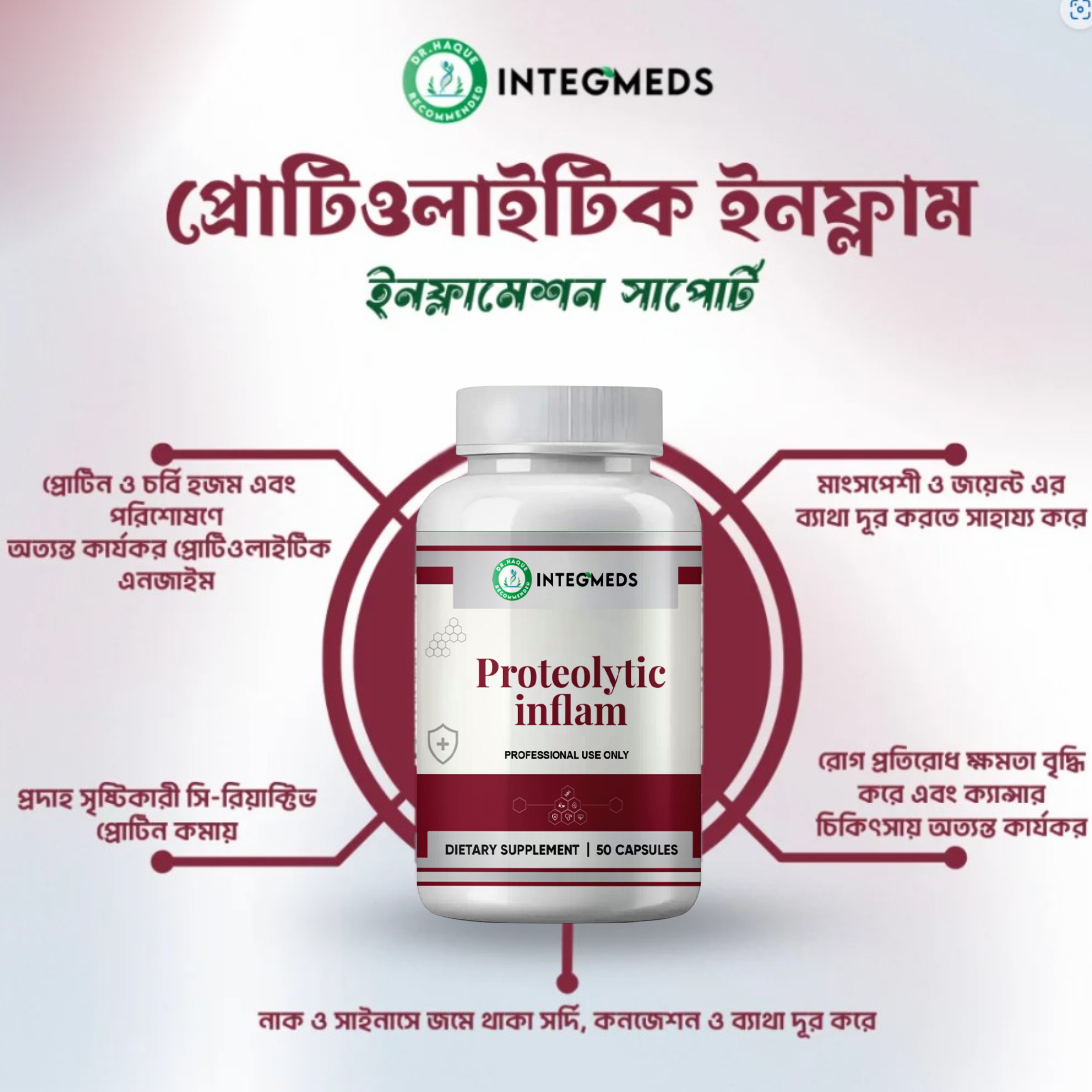 প্যানক্রিয়াটিন 4 এক্স (পোরসিন), ব্রোমেলাইন (আনারস থেকে), পেপাইন (পেঁপে থেকে), লিপেজ (পোরসিন), অ্যামাইলেজ (পোরসিন), ট্রিপসিন এবং আলফা কিমোট্রিপসিন (পোরসিন), সুপার অক্সাইড বরখাস্ত (উদ্ভিজ্জ সংস্কৃতি থেকে†), ক্যাটালেস (উদ্ভিজ্জ সংস্কৃতি থেকে†)