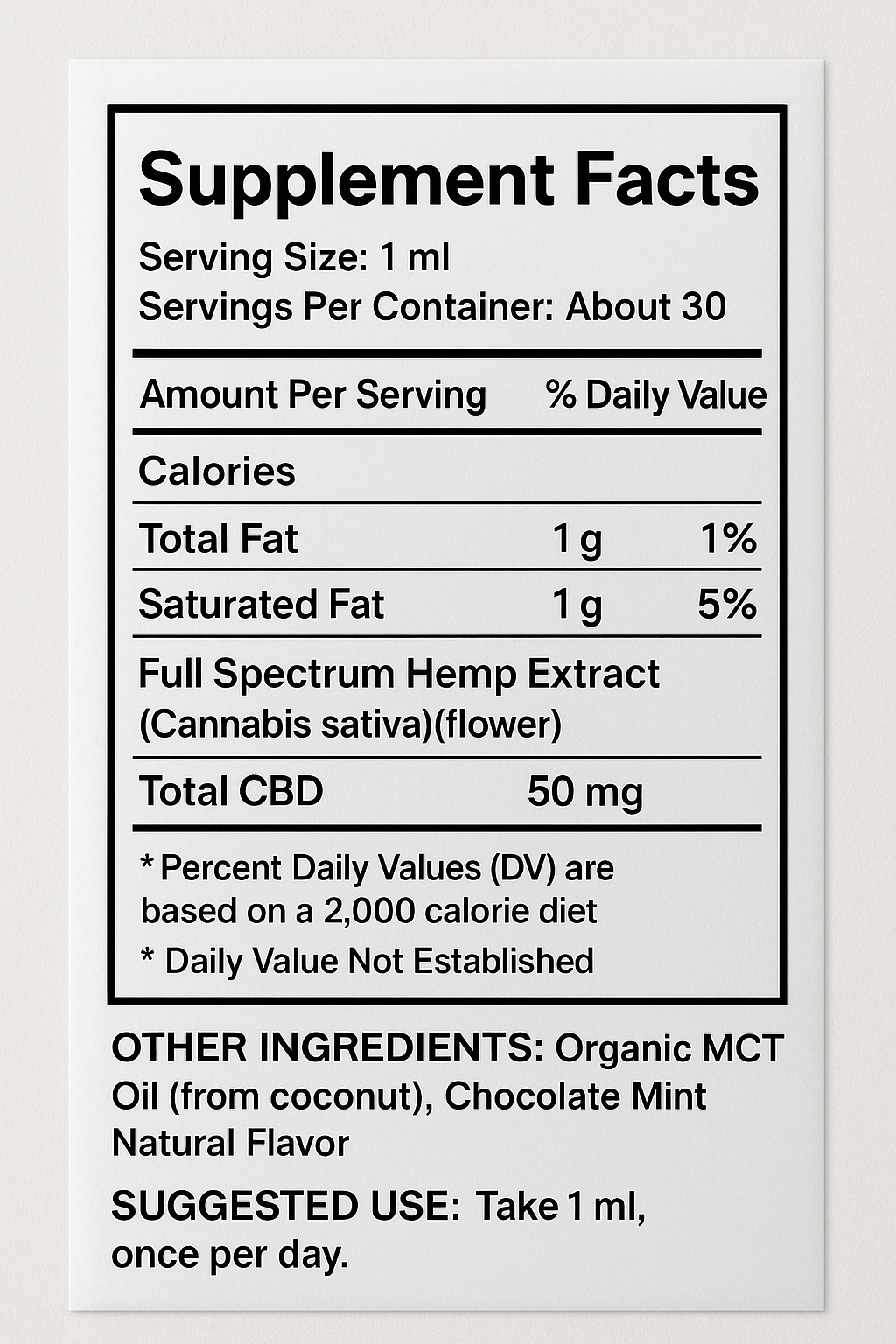 IntegMeds Pure CBD Extract delivers 50 mg of full-spectrum CBD per serving to support relaxation, stress relief, sleep quality, and overall wellness. Infused with a natural chocolate mint flavor and blended with organic MCT oil for optimal absorption, it is Non-GMO, Gluten-Free, Kosher, and manufactured in FDA & GMP-certified facilities for premium quality and safety.