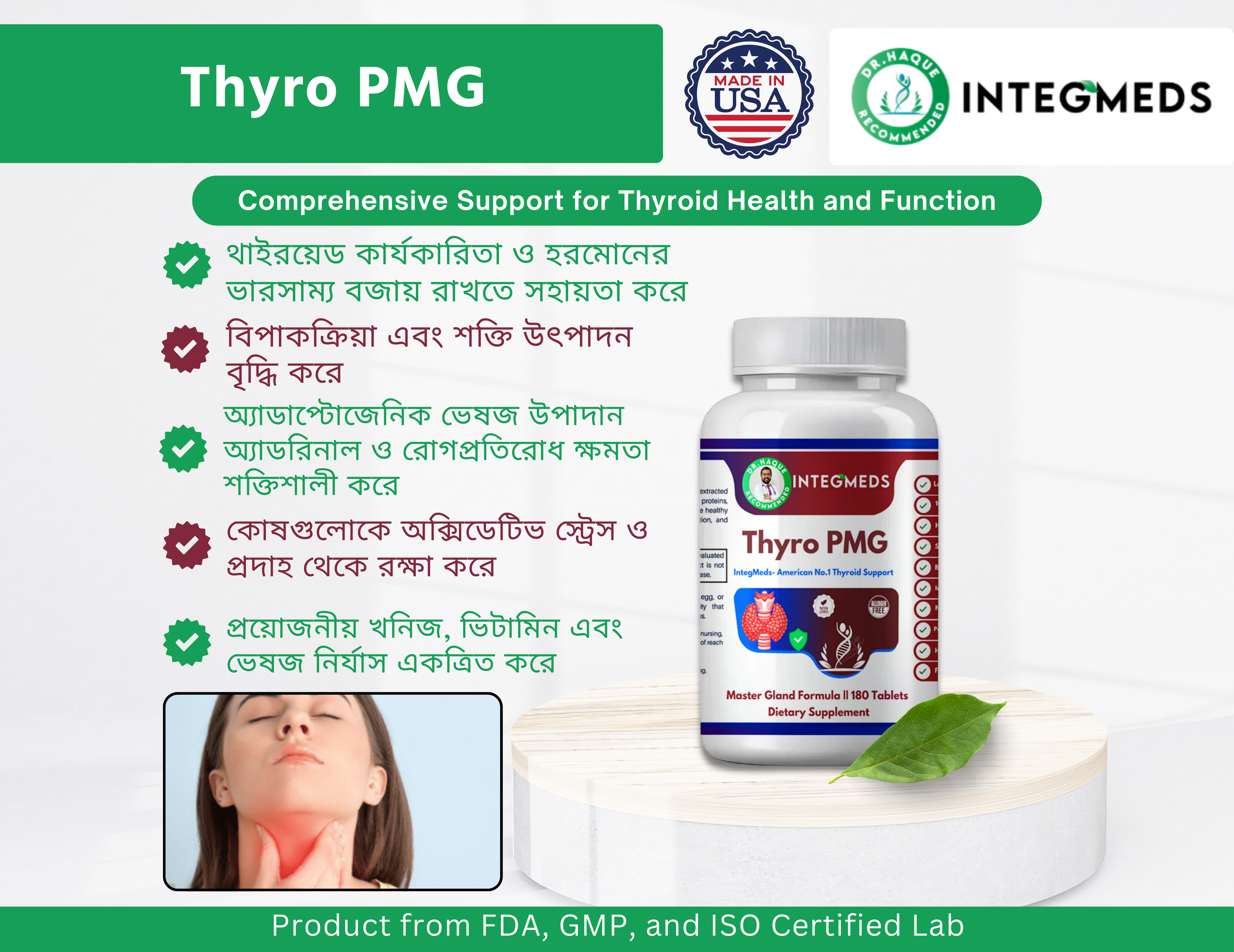 থাইরো পিএমজি দিয়ে প্রাকৃতিকভাবে আপনার থাইরয়েডকে সমর্থন করুন - বিপাক, হরমোন ভারসাম্য এবং সামগ্রিক সুস্থতা বাড়ানোর জন্য ডিজাইন করা একটি প্রিমিয়াম সূত্র।