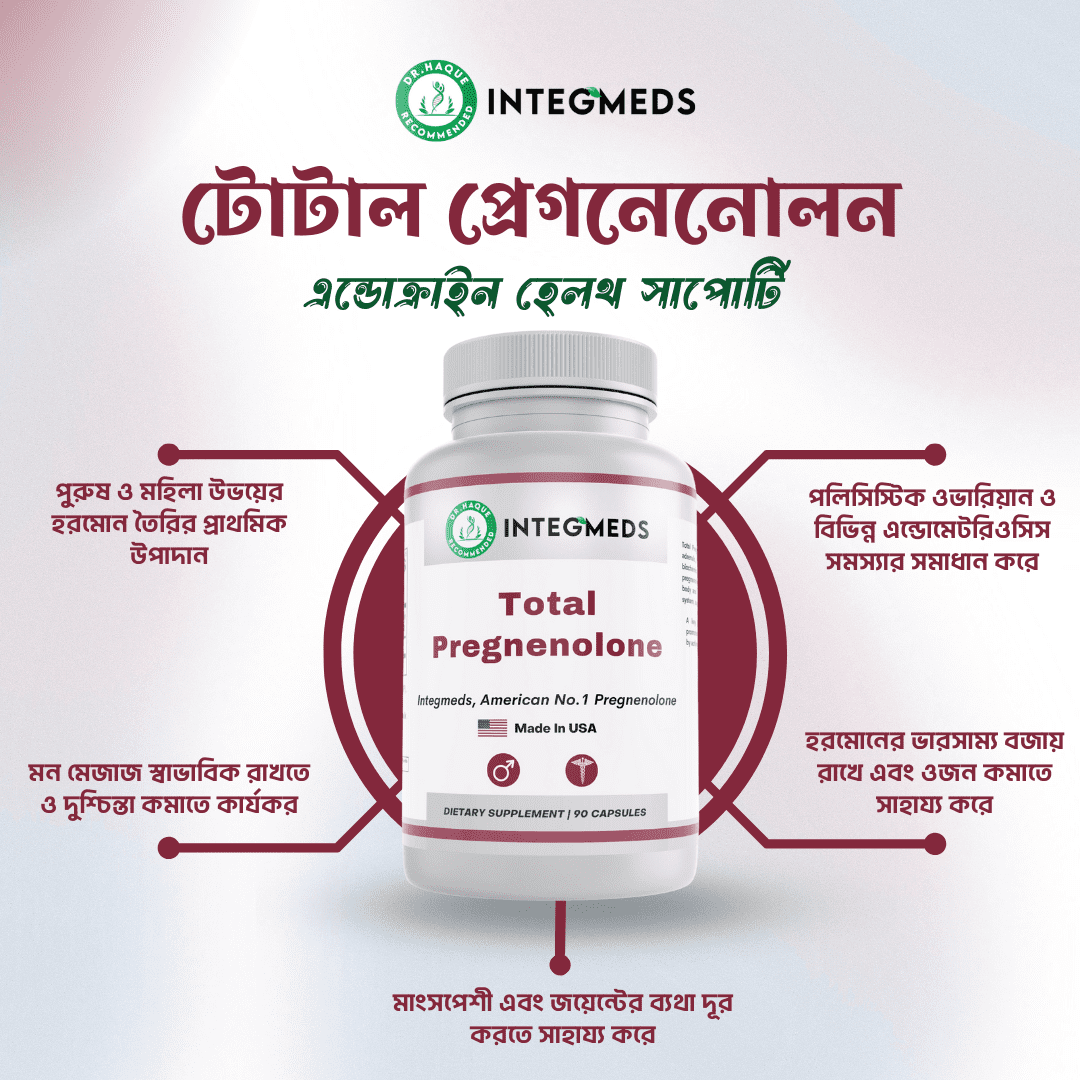 প্রেগনেনোলোন ডিএইচইএ এবং প্রোজেস্টেরনের মতো মূল হরমোনগুলির স্বাভাবিক স্তর বজায় রাখতে সহায়তা করে যা শরীরের স্ট্রেস প্রতিক্রিয়া এবং সামগ্রিক হরমোন স্বাস্থ্যের ভারসাম্য বজায় রাখার জন্য প্রয়োজনীয়।
